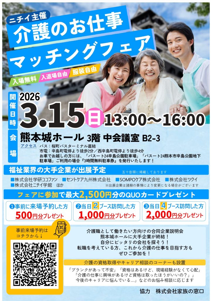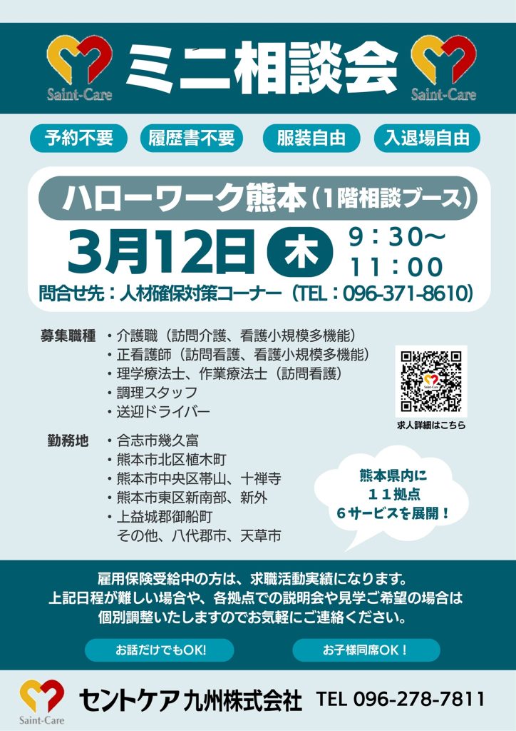日時:3/12(木) 9:30~11:00 会場:ハローワーク熊本