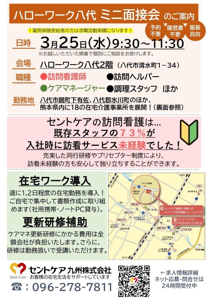 日時:3/25(水) 9:30~11:30 会場:ハローワーク八代