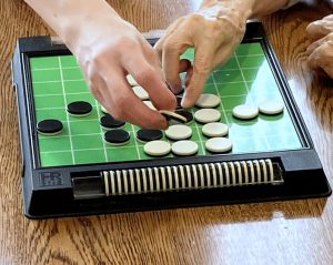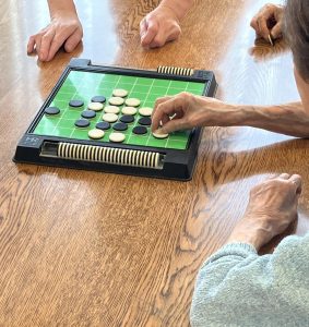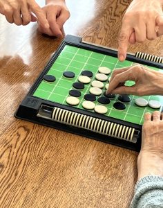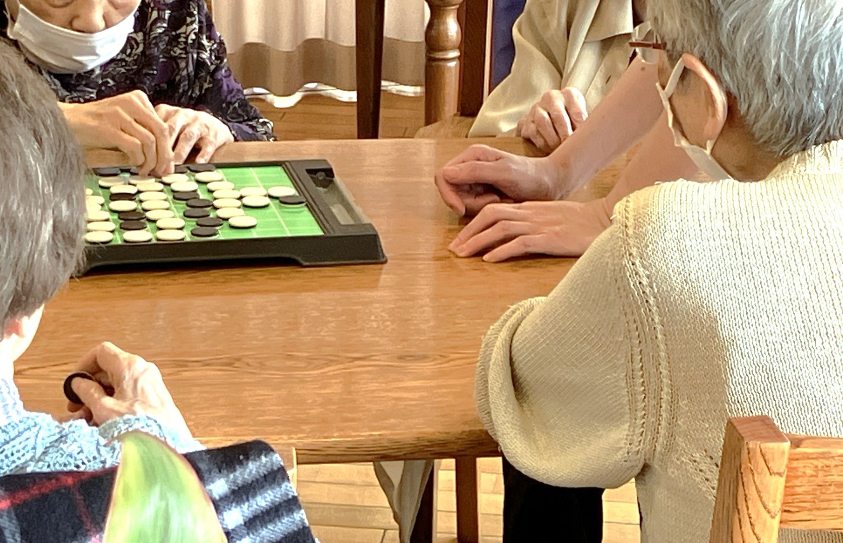 オセロで遊んだことがないお客様もいらっしゃったので、スタッフがサポートをしながら楽しまれました。 初めてプレイするオセロは、どこを裏返すかなど少し難しいと感じるところもあったご様子でした。