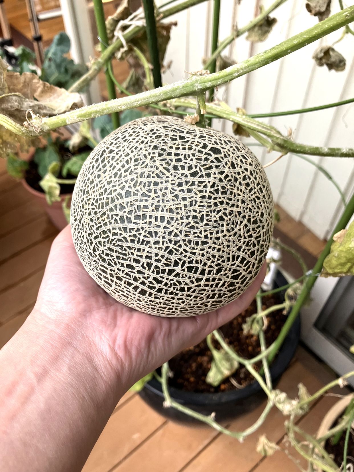 先日ついに、アルタ菜園のメロンを1個収穫しました。
