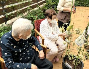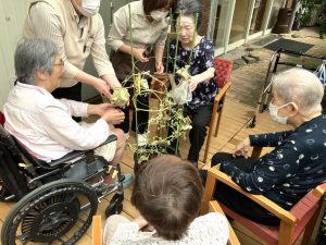 成長の様子を見守ってくださっていたお客様にも集まっていただき、チョキン!