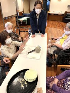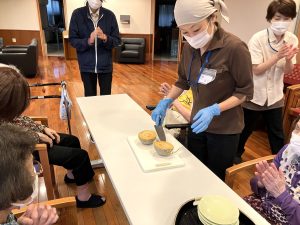 オレンジ色の美味しそうな果肉があらわれ、またまた拍手が沸き起こりました。