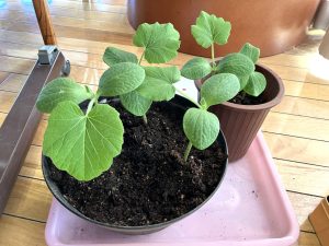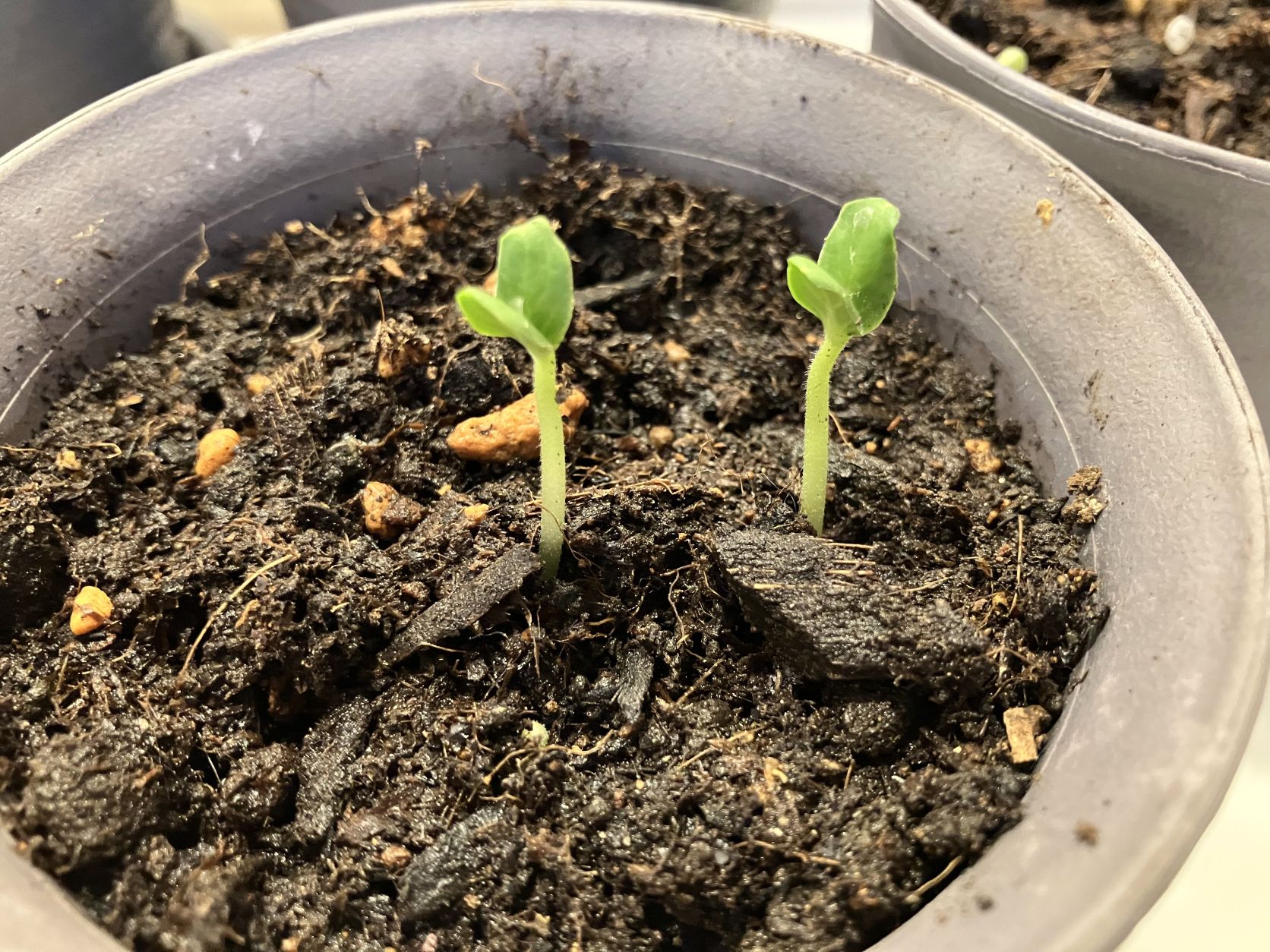 収穫して皆で食べたメロンの種を試しに植えてみると