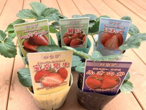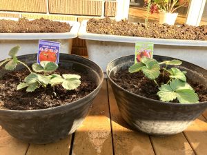 1階テラスには、苺(5品種)とブルーベリーを植えました。