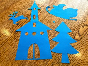 画用紙を切り抜いて作ったものと一緒に大きい紙に貼り付けていき・・・
