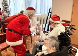 歌の先生のピアノの音と共にサンタが登場し、お一人ずつにご挨拶して回りました。