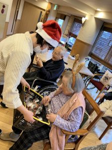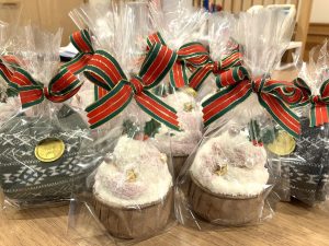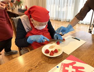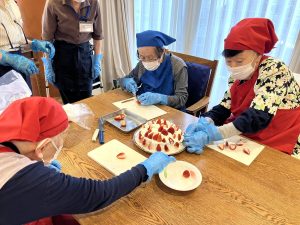 クリスマスの今日、5階ではクリスマスケーキのデコレーションをしました。