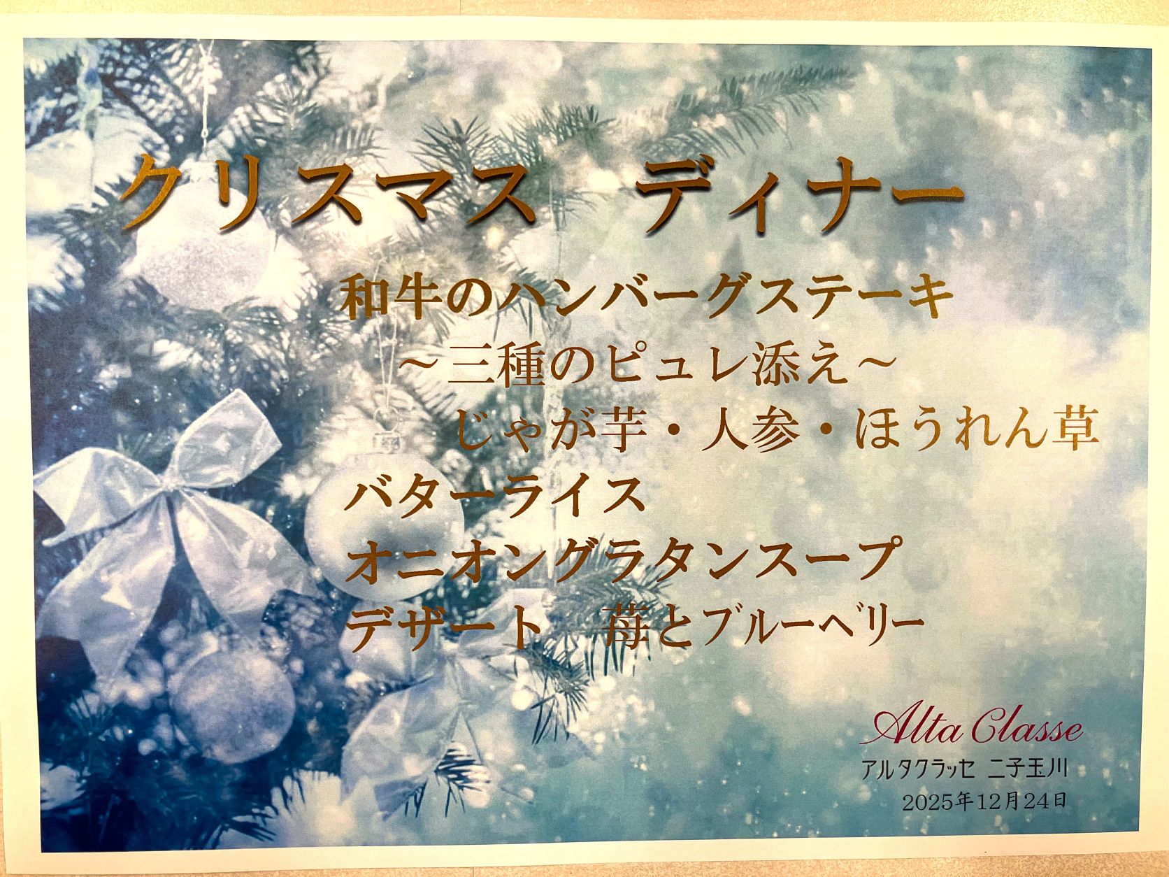 Xmasイブのディナーをご紹介します。