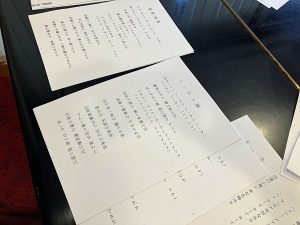 ソーラン節や花笠音頭など、とても懐かしい民謡を和風な音色と一緒に届けてくださり、 お客様もご存じの歌があると歌詞カードを見ながら歌われ、とても盛り上がるお祝いとなりました。