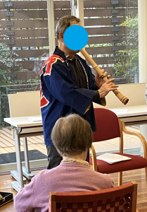 また尺八も披露してくださり、やわらかい音色がホールに響き渡りました。 演奏が終わった後には、皆様にケーキを召し上がっていただきました。