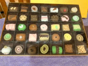 3階にはスタッフがフェルトで作った ゴディバのチョコレートが飾られています。 お客様が本物?と勘違いしてしまうほど細かく作られていて、 毎年見る度に食べたい!と思ってしまう一見の価値ありの作品です。