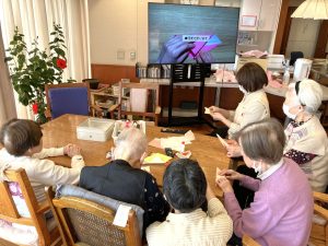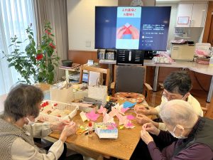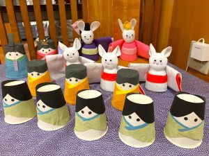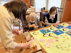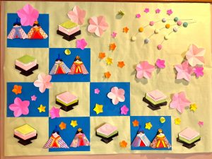 皆でひな祭りの壁飾りを作りました。