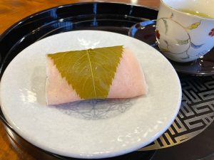 おやつには桜餅を召し上がっていただきました。