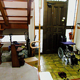 広い玄関は掴まる事ができず、不安定。玄関中央に手すりを提案しました。