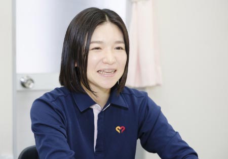 研修で学んだ基本を守るのは大切ですが、「こうあるべき」という理想は持たない方が働きやすいです。人に向き合う仕事なので思うようにいかないことも多く、完璧主義ではつらくなってしまうと思います。お客さまも自分も心地よく過ごせるためには、臨機応変な対応が大事です。コミュニケーション力を生かして、利用者さまの気持ちに寄り添える方の応募をお待ちしています。