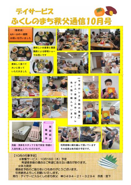 「ふくしのまち秩父」の日々を切り取りました「デイサービスふくしのまち秩父通信」をお届けします。