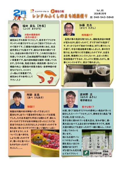 レンタルふくしのまち鴻巣 2026年2月号 2026.02.13 レンタル|鴻巣 福祉用具貸与・販売 この記事のタイトルとURLをコピーする コピーしました レンタルふくしのまち鴻巣 2026年2月号 「レンタルふくしのまち鴻巣」営業担当の自己紹介になります。 福祉用具に関するご相談がございましたら、ご遠慮なくお声がけください。