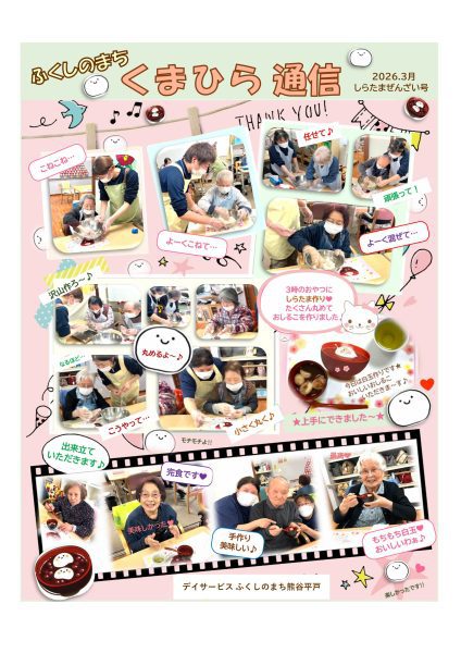 そんな楽しい思い出を収めました「くまひら通信 2026年3月号「しらたまぜんざい」」をお届けいたします。